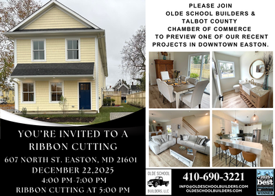 Please join The Chamber and Olde School Builders as we cut the ribbon on their newly completed twin houses, 607 North Street, Easton.